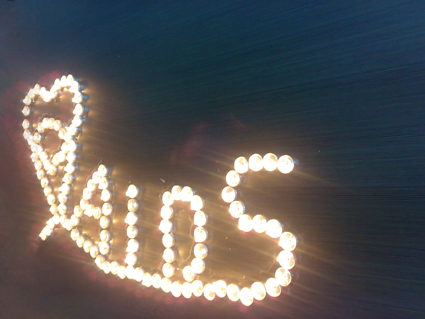 志愿者和感染者用蜡烛制作的防艾,关心感染者的图片。
